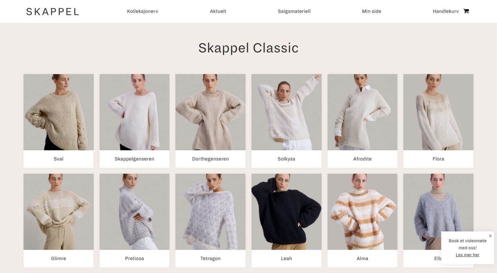 Skappel har solgt strikkesett til privatpersoner gjennom sin nettbutikk i snart 10 år, og ville nå ta det naturlige steget inn i butikker. For å minske behovet for manuelle prosesser og gjøre det enklere for forhandlerne ønsket de å bygge en plattform for fremvisning av kolleksjoner og bestillingsprosesser på nett. Etter å ha bekreftet interessen for Skappel sine strikkesett gjennom en digital undersøkelse, kartla vi behov og prosesser før vi utviklet en tilpasset løsning for forhandlere.