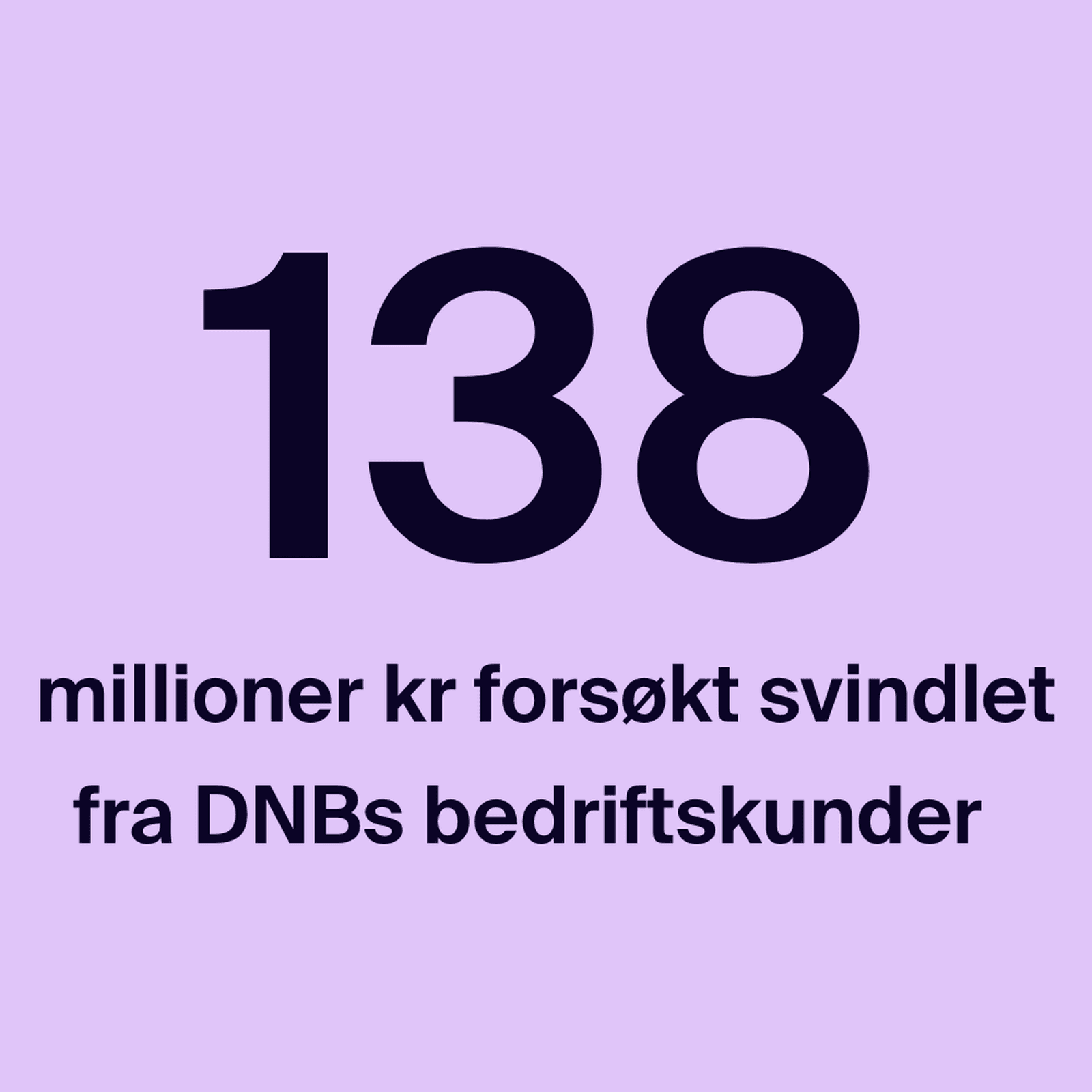 I 2020 ble DNBs bedriftskunder forsøkt bedratt for 138 millioner kroner. (Kilde: DNB).