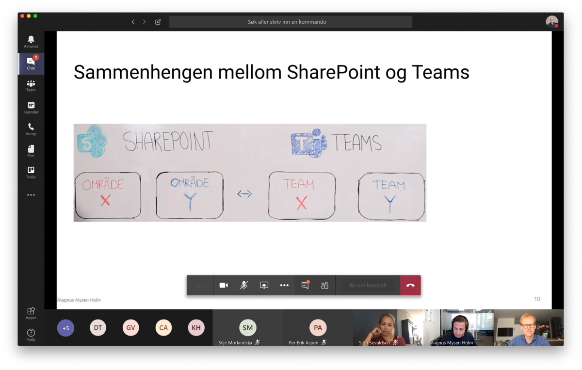 Vi jobber nå med å omstrukturere SharePoint og Teams for å sørge for en logisk oppbygging og bedre samarbeid, med utgangspunkt i at det meste skal foregå i Teams.
